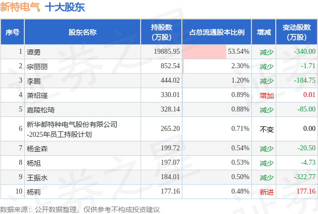 根据新特电气2025年三季报公布的十大股东详情如下: